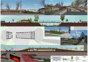 En relación al espacio parquizado, planteamos la idea de entubar todos los canales abiertos que desembocan en el arroyo para que queden escondidos, y el espacio público y los caminos