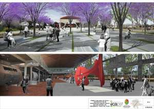 Además, como metáfora de hermandad, se propone forestarla con jacarandaes, especie elegida en la Plaza San Martin.