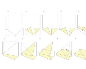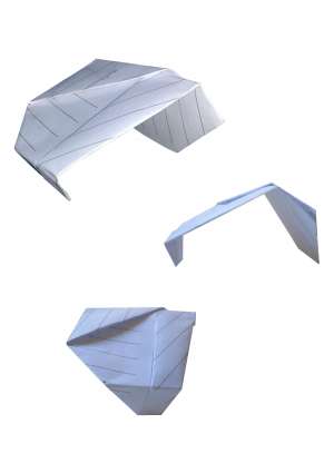 Diseño realizado a partir de una maqueta de una cáscara arquitectónica ficticia. Un ejercicio espacial geométrico con una hoja de papel.