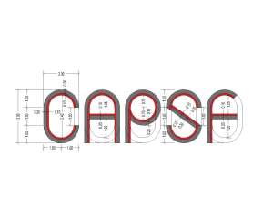 El logotipo replica el gesto visual de la ochava con cortes en sus caracteres, dándole dinamismo y acompañando el movimiento del isotipo, generando así un vinculo gráficamente y facilitando una lectura coherente. La interrupción de los caracteres funciona como una cualidad distintiva que capta la atención e interactúa con el observador, permitiendo (a modo gestáltico) que sea su ojo, la mirada subjetiva, el que complete el contorno de los caracteres y reconstruya la identidad del Colegio de Arquitectos.