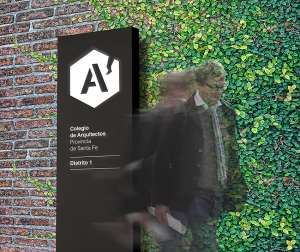 ochava. El isotipo adopta una forma inmediatamente reconocible y pregnante: Un cuadrado, la pieza básica del tradicional manzanero que define nuestras ciudades; una célula que conforma (al multiplicarse) el tejido urbano donde los arquitectos ejercen su labor diariamente. Esta figura es reforzada con un gesto formal característico: La ochava. Un corte a 45° en una de sus esquinas asienta la relación entre la forma y su significado, generando con esto una figura fuerte, de alta legibilidad y rápidamente identificable.