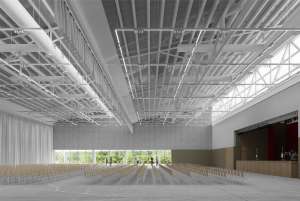. El salón principal, con sus ingresos laterales, brinda la posibilidad de ser fraccionado en varias partes dependiendo las demandas de las actividades que puedan allí desarrollarse, y también abrirse en su cara Este para actividades complementarias al aire libre. El programa de apoyo y servicios rodea a la sala principal de modo que pueda abastecerla sin entrar en contacto con el público visitante.