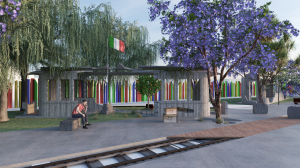El proyecto se desarrolla en Santa Fe, en un área donde convergen trazas ferroviarias, espacios verdes y centralidades urbanas. Su propósito es reconocer la huella inmigrante en la conformación de la ciudad y recuperar el patrimonio ferroviario como parte del paisaje cultural. El sitio preserva elementos significativos de la infraestructura ferroviaria, y el tren se erige como símbolo de movilidad, encuentro y construcción de ciudad, representado en la utilización del acero galvanizado como material protagónico en pérgolas y mobiliario urbano.