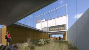 Es así que, a nivel cero, se realizan tres operaciones básicas. Por un lado, mediante el ensanche del espacio público, se crea un atrio semicubierto que oficia de espacio de transición entre lo puramente urbano y el propio edificio, actuando como un espacio fuelle. Por el otro, en el interior, una segunda operación consiste en generar un patio abierto hacia el norte, buscando las mejores orientaciones, creando un ambiente que varía según las épocas del año a partir de la vegetación y el diseño paisajístico que incorpora especies nativas de bajo mantenimiento, y sobre el cual se funden una serie de visuales cruzadas entre las distintas unidades del conjunto que se vuelcan sobre este patio. Finalmente, la tercera operación, consiste en despojar la planta de cualquier elemento fijo que obstruya las visuales, concentrando los núcleos circulatorios y de servicios sobre una de las medianeras.