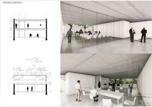 El proyecto parte de un eje ordenador que resuelve el conjunto marcando el camino del posible crecimiento. Sería suficiente un solo pabellón de planta libre para admitir diversos usos y a medida que el presupuesto lo permita y que las actividades lo requieran, ir creciendo y complejizándose.
