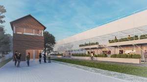 II. Sobre calle J. M. Zuviría, una explanada menor acompaña la rehabilitación del cabin ferroviario, expandiendo su uso interior hacia el exterior y articulando la calle con el paseo y sus actividades.
